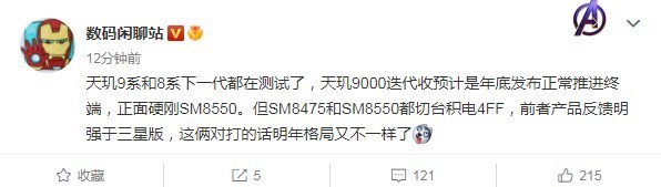 天玑9000最新爆料 4月28日,数码博主@数码闲聊站 曝光了天玑9系和8系处理器的进展,称这两款迭代芯片都在进行测试,其中天玑9000迭代产品预计年底发布,并且很快就会应用到终端上,“正面硬刚SM8550”。SM8550并不是骁龙8 Gen1的迭代产品,而是高通下一代旗舰处理器骁龙8 Gen2。SM8475才是骁龙8 Gen1的迭代产品,预计会被命名为骁龙8 Gen1 Plus。 骁龙8 Gen1由三星代工,市场反馈不及预期,如果高通将订单切给台积电,这太正常不过了。上述博主也认为,SM8475和SM8550将交由台积电代工,依旧采用4nm工艺。如果是这样,今年下半年,天玑9000迭代产品和骁龙8 Gen1 Plus或骁龙8 Gen2的对打将会更加激烈。 |