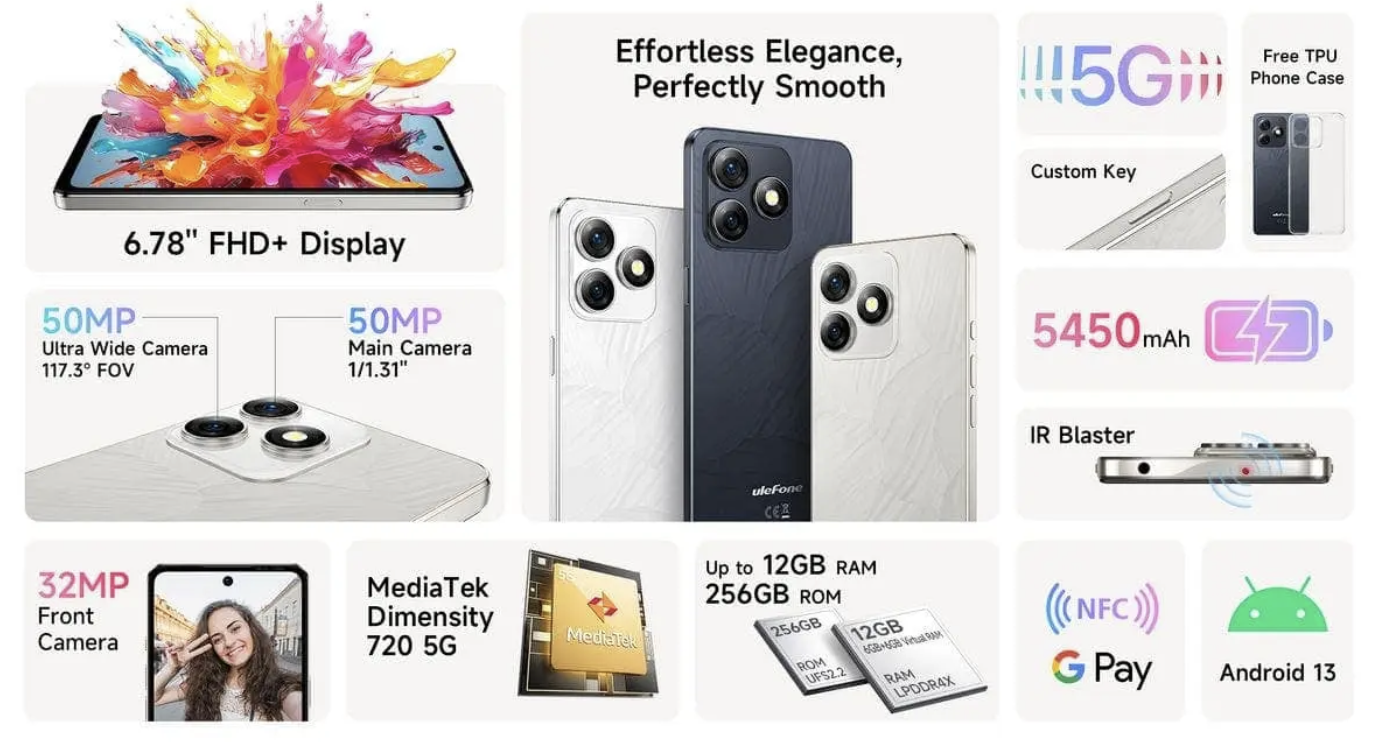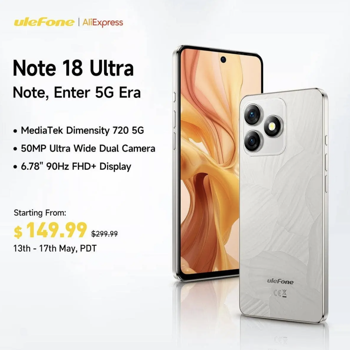 IT之家 5 月 17 日消息,三防手机制造商?Ulefone?今天在海外推出了?Note 18 Ultra?手机,这款手机搭载天玑?720 5G?处理器,配备 6GB RAM?及 256GB?存储空间,外形及宣传文案非常类似友商产品,售?149 美元(IT之家备注:当前约 1076 元人民币)。
